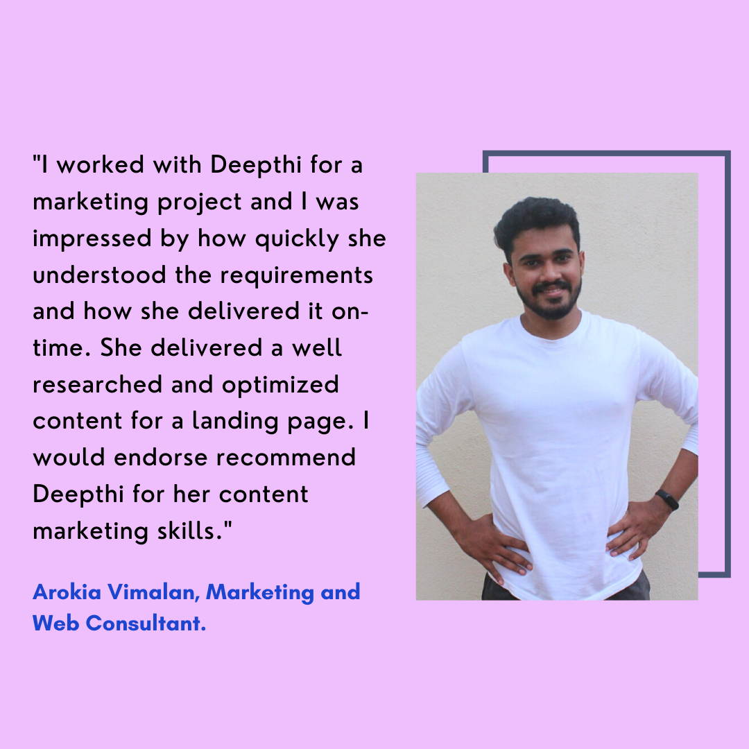 What I do: I help brands, digital marketing agencies, entrepreneurs, small businesses, and founders by writing and strategizing content focused on increasing sales and brand awareness.